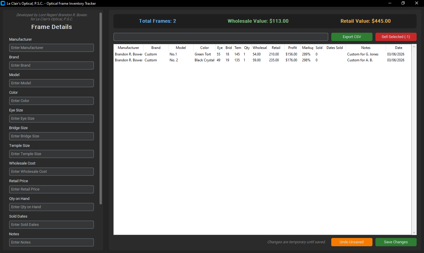 An app developed by an Optician specifically for Opticians to track local frame data. Can be customized for individual optical retail needs.